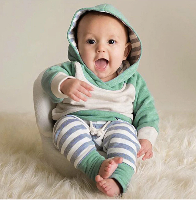 Nous avons déniché pour vous ce petit jogging mi-saison pour bébé: bleu/vert/blanc 3 pièces ! Un petit pantalon de jogging rayé bleu/blanc avec son switch-shirt à capuche et son chapeau, assortis, pour compléter le set. Une tenue chic et simple pour un bébé . Un cadeau original pour un petit garçon ou une petite fille stylés.